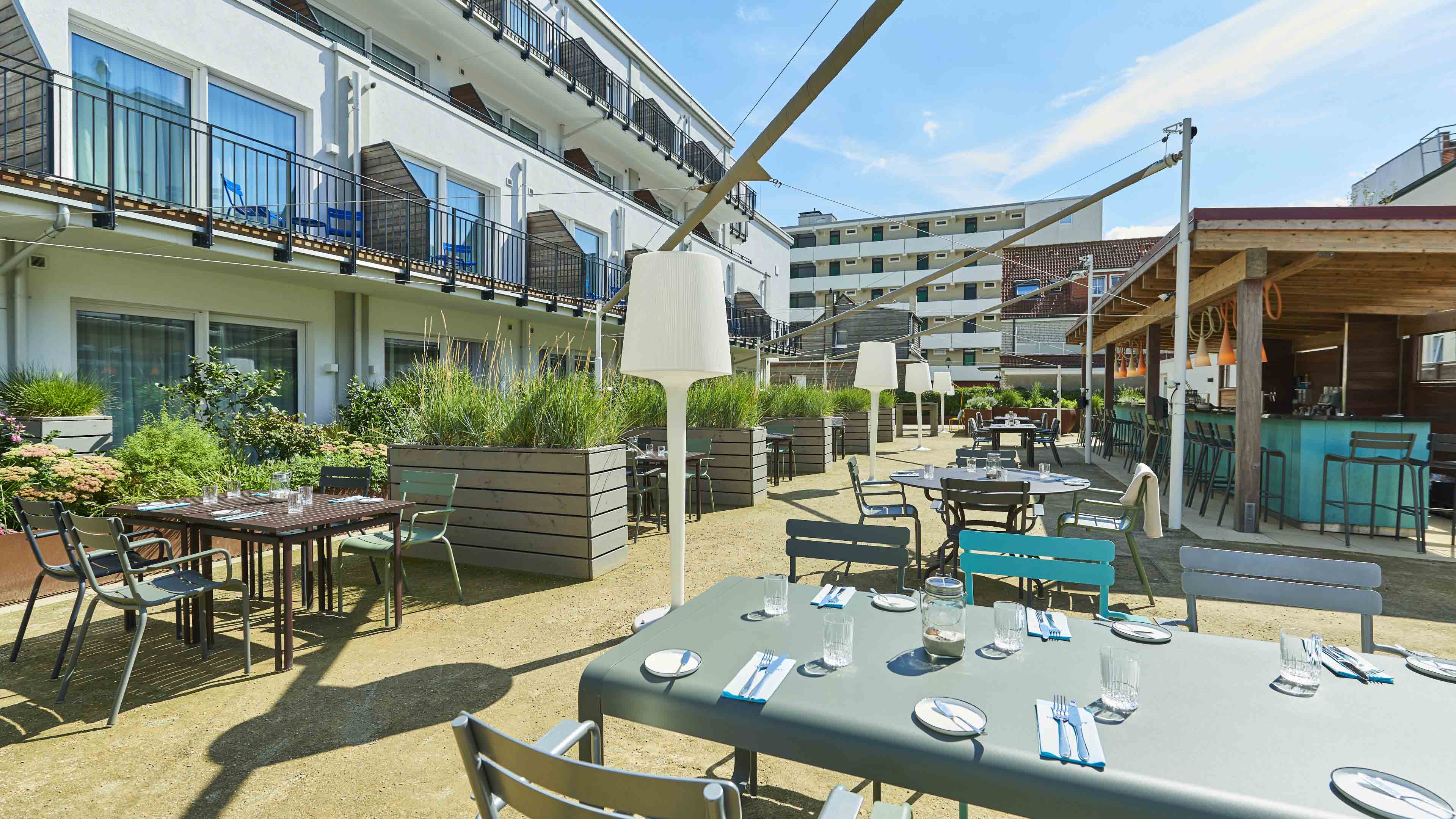 Versteckt gelegen und einmalig gut. Von außen nicht zu sehen und nicht zu erahnen. Unseren SECRET GARDEN - eine kleine Oase auf der Insel - findest Du im Innenhof des NEW WAVE! Große Sonnensegel, tolle grüne und bunte Hochbeete und gemütliche Sitzgelegenheiten schaffen eine kleine grüne Oase, gut geschützt vor Wind und dem Trubel der Straßen. Mitten im großen Kräutergarten steht unser Feuerring, der Kugelblitz, an dem an schönen Tagen mit den Gästen zusammen Knuspriges gegrillt wird...